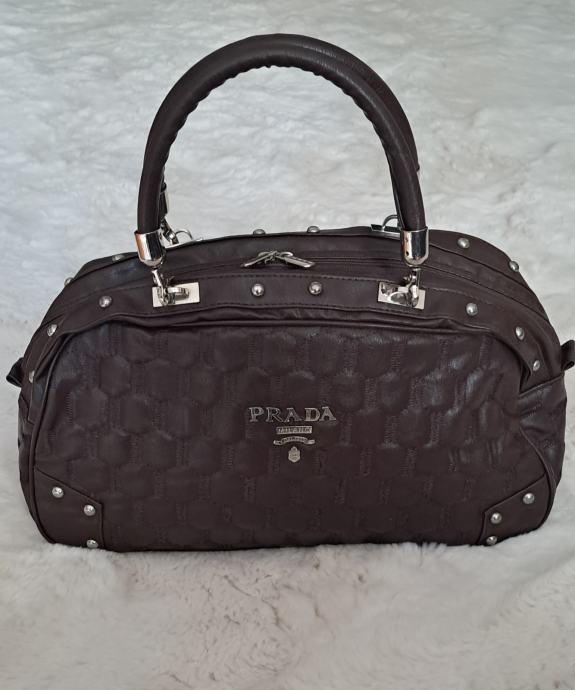 Prodam elegantno Prada torbico v rjavi barvi, s kratkima ročajema.