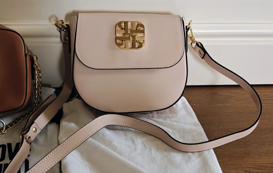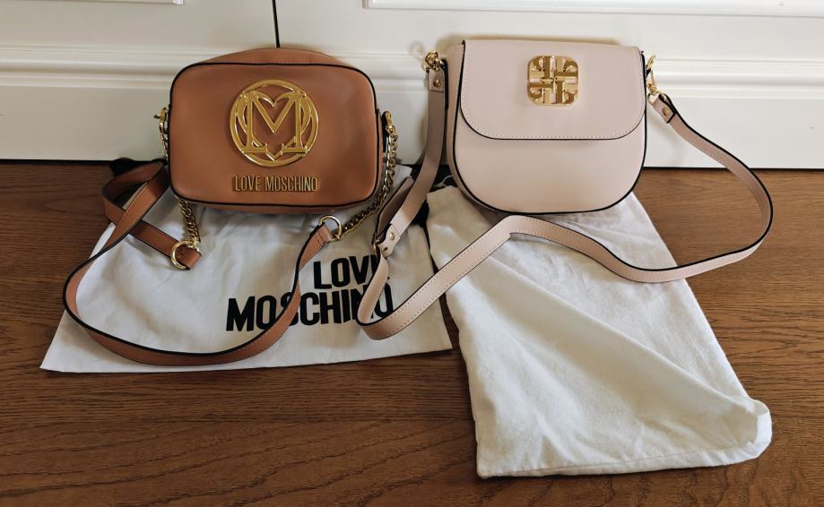 Prodajam set dveh elegantnih usnjenih poletnih torbic, ki sta skoraj nič rabljeni v odličnem stanju. Ena torbica je v rjavi barvi z zlatim logotipom Love Moschino, druga pa v svetlo bež barvi z zlatim detajlom (znamka je italijanska dizajnerka). Obe torbici prideta z originalnima zaščitnima vrečkama in sta idealni za poletne izlete ali večerne izhode.