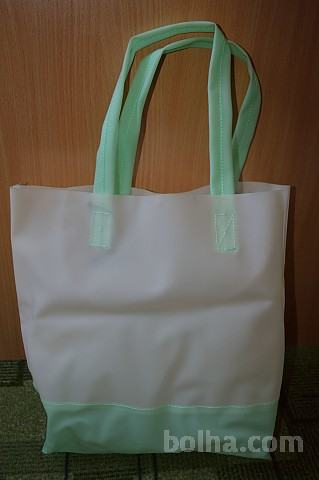 PVC torba. Približno 30x11 cm spodnji del. Bela + zelena.