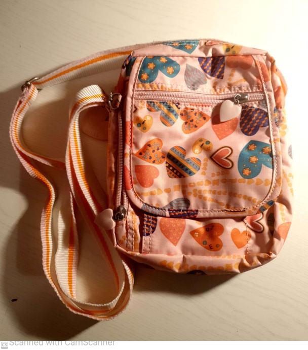 Velikost torbice je 15 x 20 cm, pas je nastavljiv.