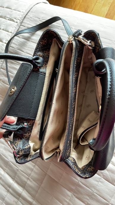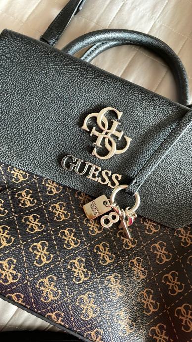 Prodam odlično ohranjeno torbico znamke Guess. Zelo malo nošena, prodajam zaradi neuporabe. Je črne barve z rjavimi detajli in zelo prostorna. Zraven dam tudi vrečko Guess za shranjevanje torbice. Kupljena je bila v Emporiumu po ceni 120€. Za več informacij mi prosim pišite.