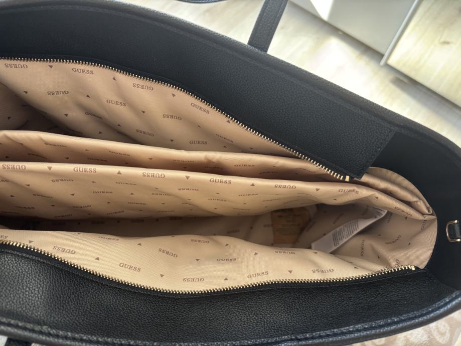 Prodam novo torbo Guess. Material ni trd, torba se prilagodi glede na povnost notranjosti. Je zelo prostorna, a meni žal prevelika.