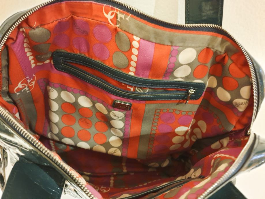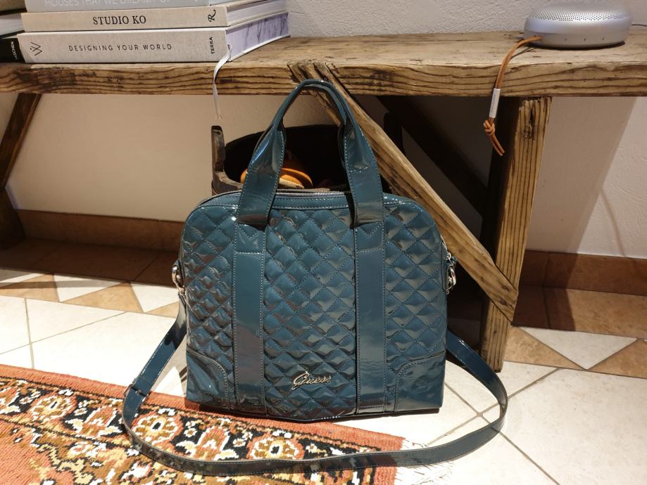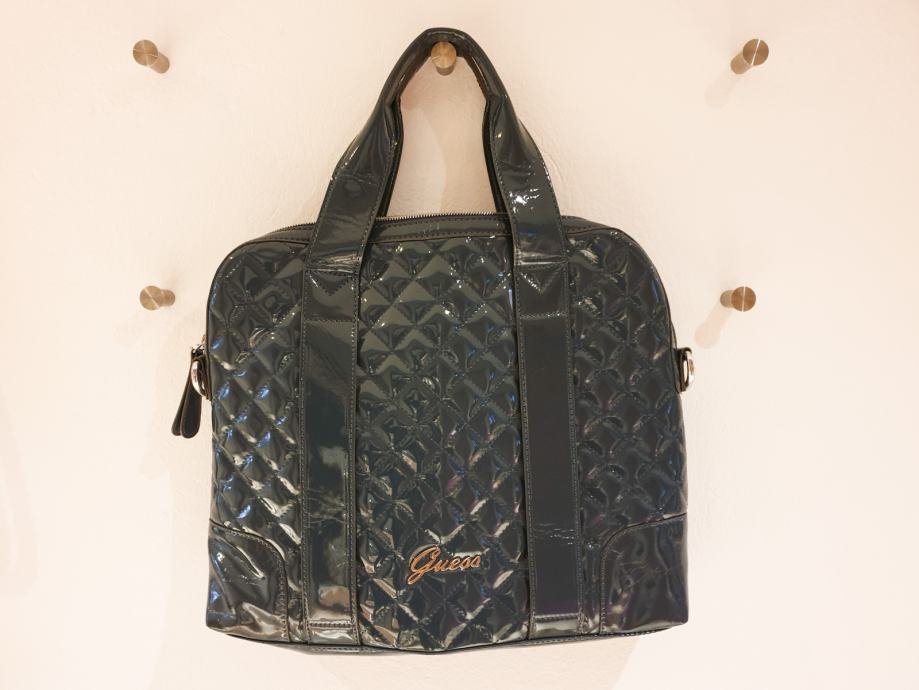Prodam čudovito torbico Guess, lak, visok sijaj, s prešitim vzorcem. Dimenzije: cca. 42 x 36 cm (brez ročaja). Torbica je odlično ohranjena.