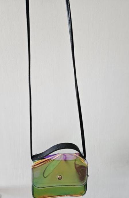 Prodam mini torbico, s holografskim vzorcem, 13cmx14.5cm. Prevzem v Lj.