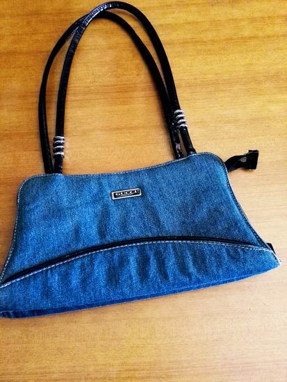 Manjša torbica iz jeansa, ročaji umetno usnje, dimenzije 30 cm širina 20 cm višina, z oznako Gucci, zelo lepo ohranjena.