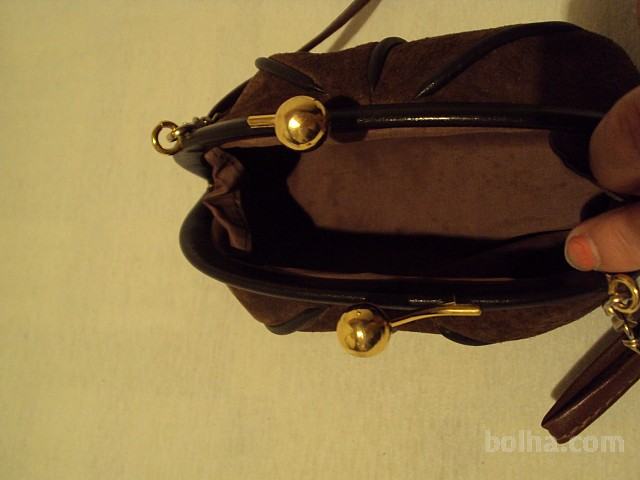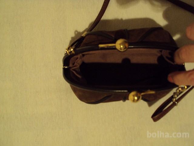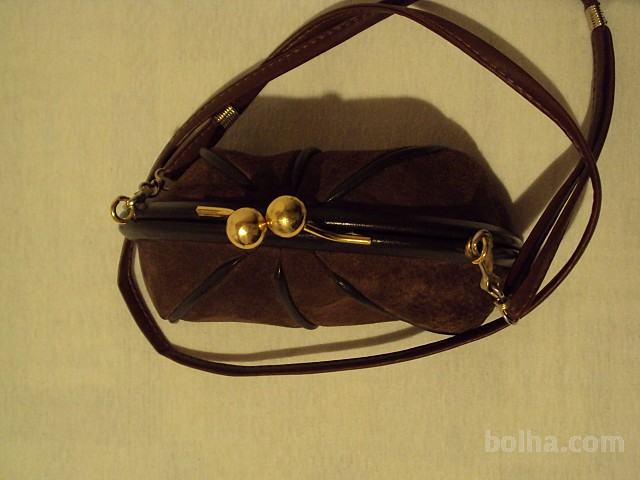 Torbica je usnjena semiš temno rjave barve, je majhna a prostorna.