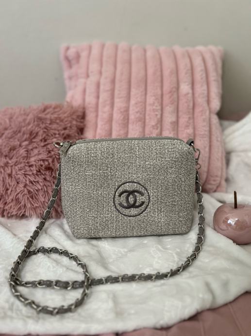 Elegantna torbica je znamke CHANEL. Je nova in brez praske. Paše k sivemu, belemu, črnemu in rjavemu outfitu. Je zelo privlačna, a hkrati nežna. Znotraj je veliko prostora in za telefon, denarnico, parfum in ostalo.