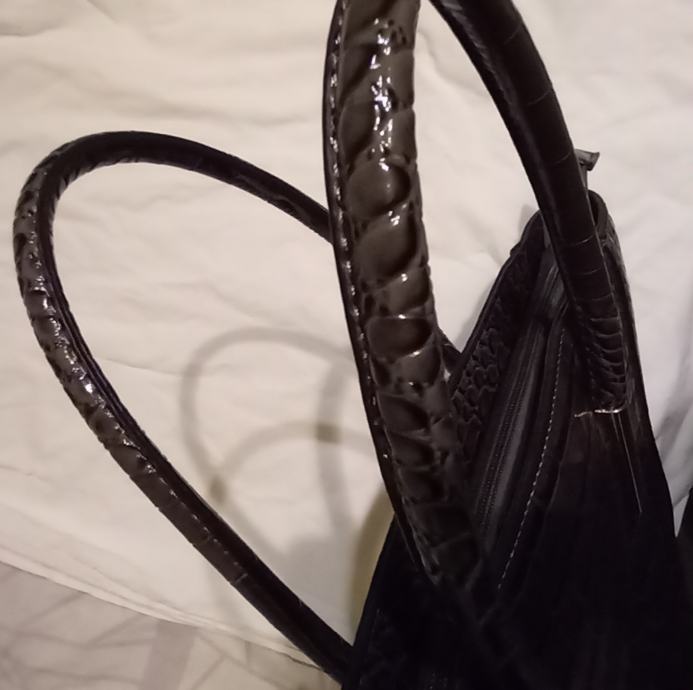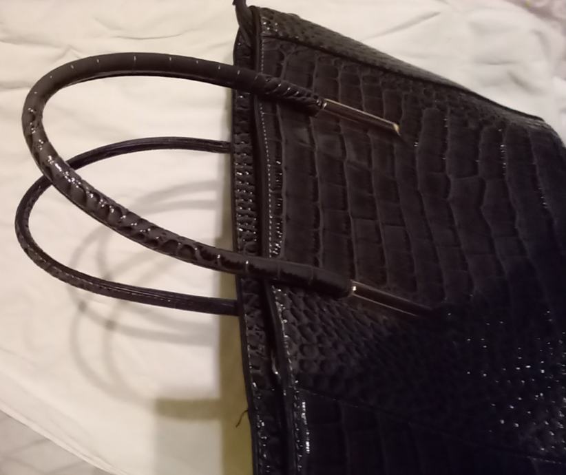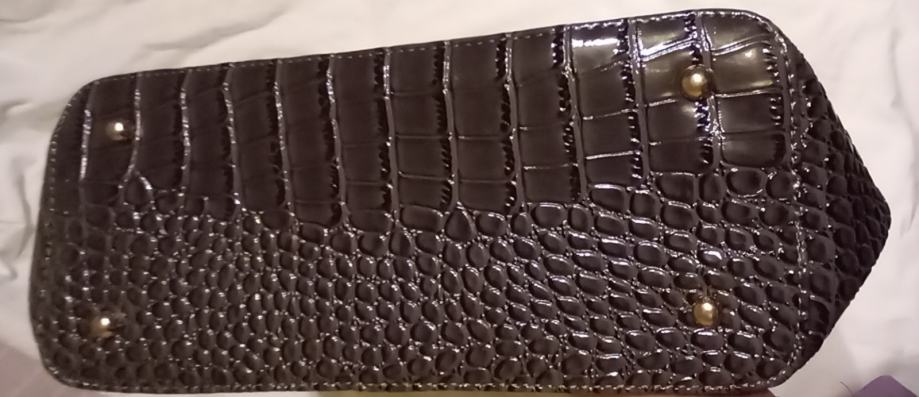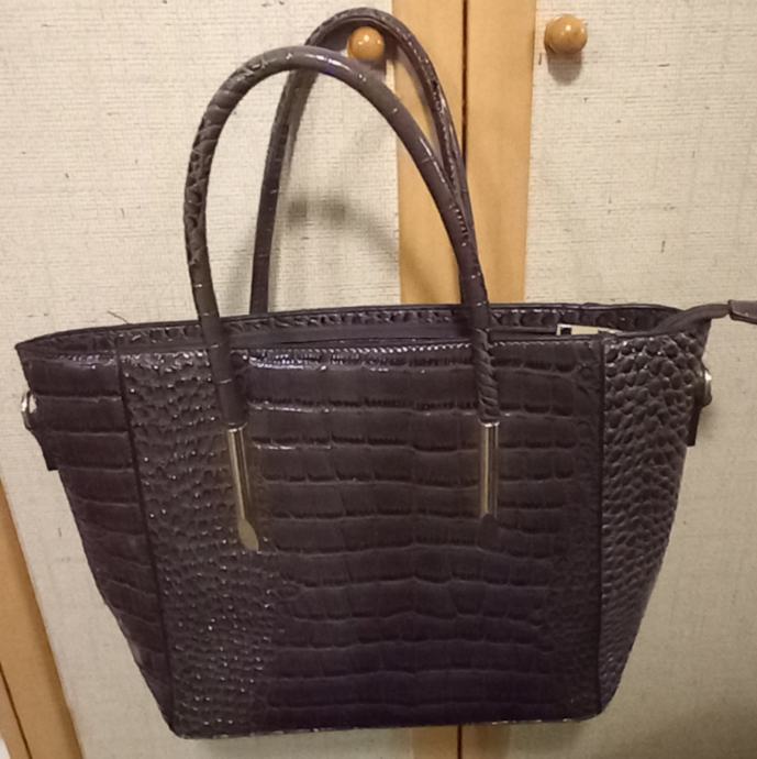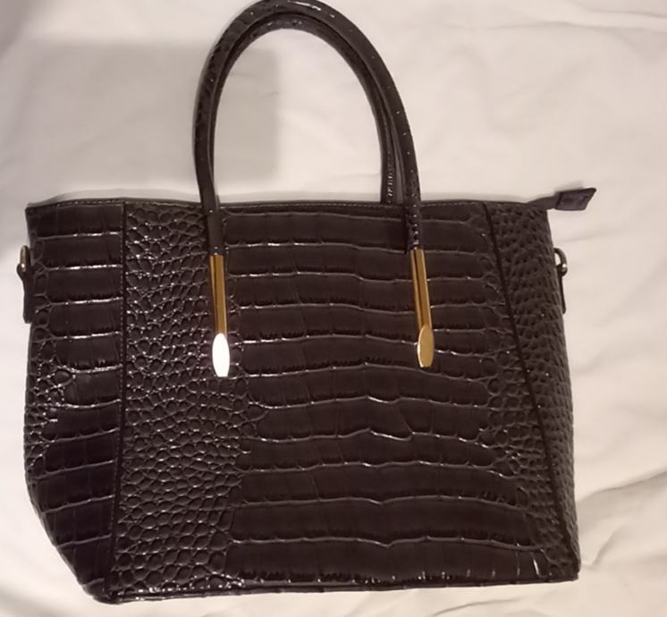 Naprodaj nova elegantna torbica s krokodilskim vzorcem v črni barvi( antracit) popolnoma nerabljena. Prostorna in moderna oblika z ročaji in kovinskimi detajli, idealna za vsako priložnost.