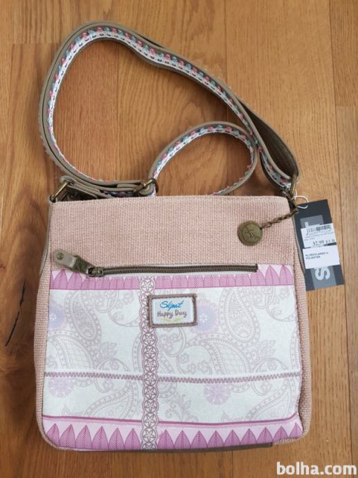 Popolnoma nova torbica iz blaga v nezno rožnati barvi. Velikost torbice je 24x24x5 cm.