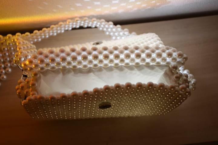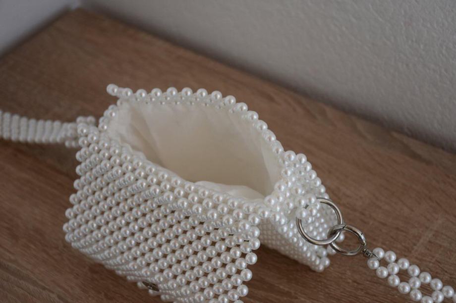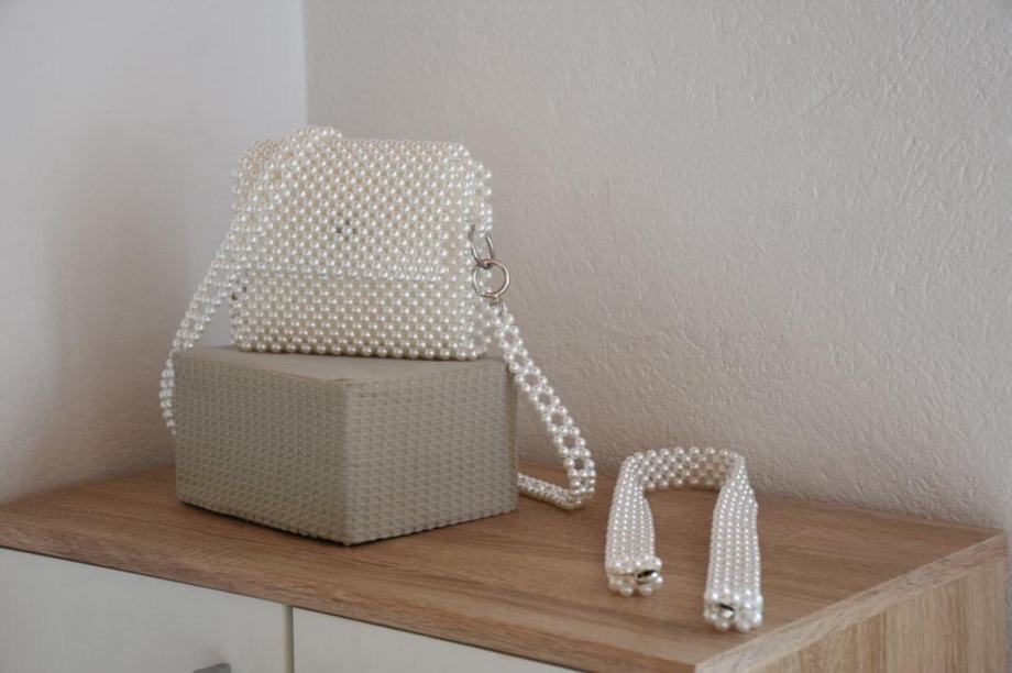 Nova pletena torbica narejena iz perlic.