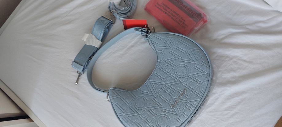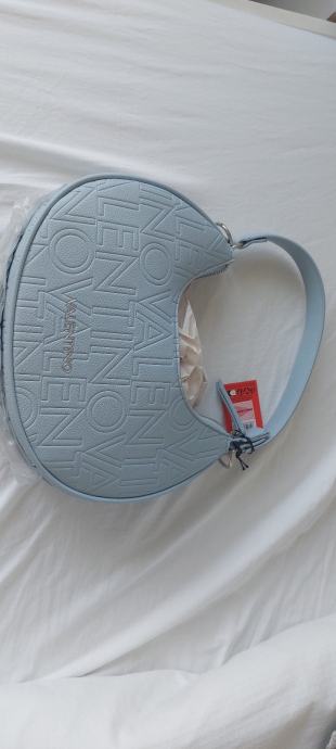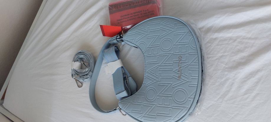 Nova valentino torbica, s 2 dodatna pasa in zaščitno vrečko, barva baby modra. Unutar ima 2 žepa od tega 1 na zadrgo. Torbico sem prejela za rd ampak ne maram to barvo iz tega razloga prodajam. Redna cena v trgovini je 130 e.