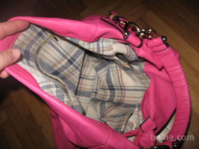 Prodam veliko torbo, ki se jo nosi v roki. Je malo nošena, notranjost brezhibna, malenkost porajsana na tisti strani, ki se jo večinoma nosi ob boku (slika). Ima en velik predal, ki je pregrajen z blagom, ter nekaj manjših predalov za drobnarije.