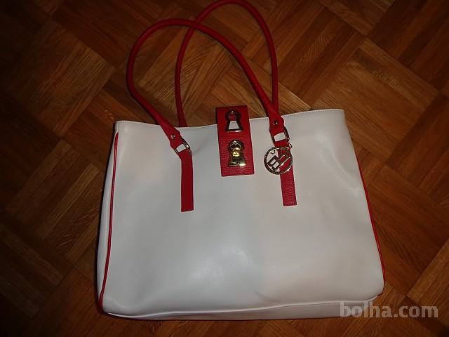 BELA ŽENSKA TORBICA Z RDEČIM ROČAJEM IN OBROBO ( Znamke ROBERTA BIAGI- MADE IN ITALY) usnje