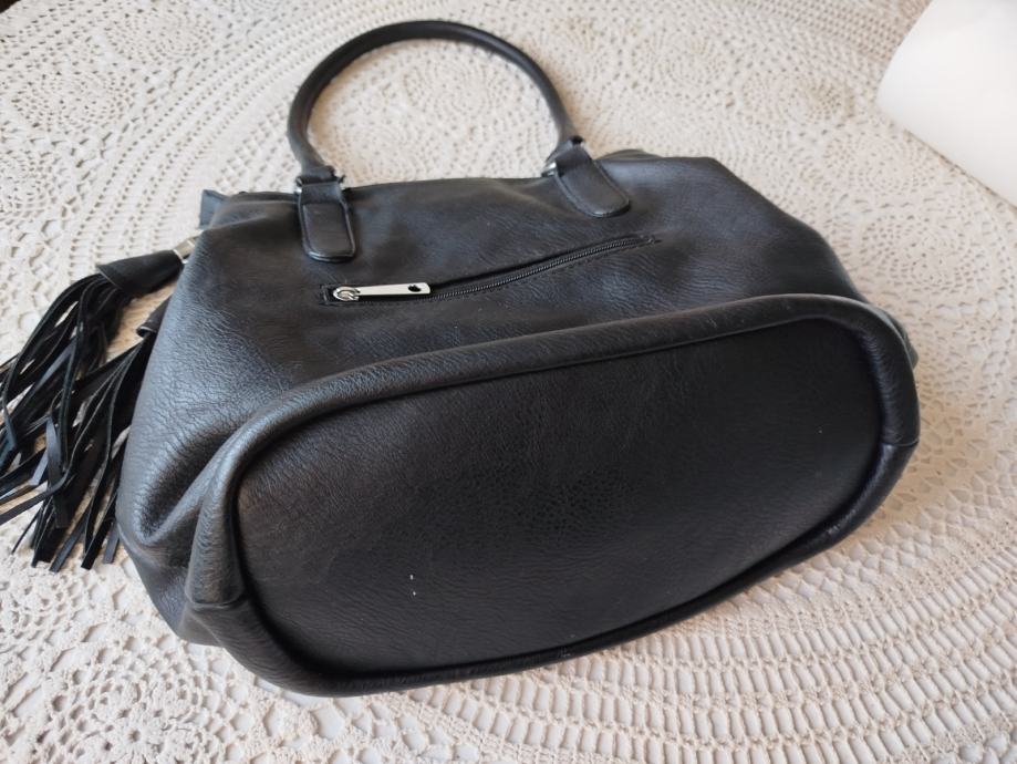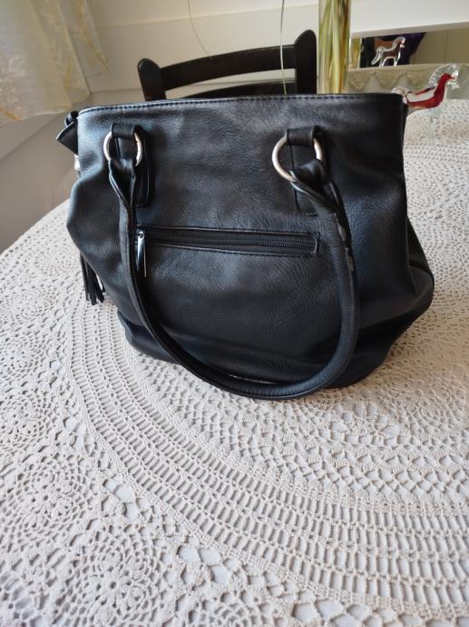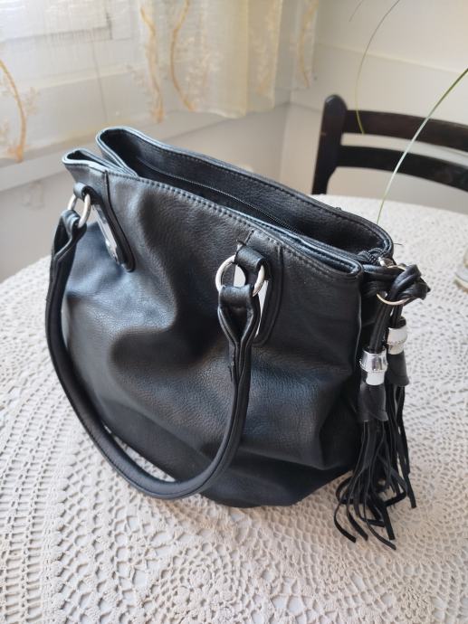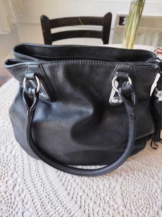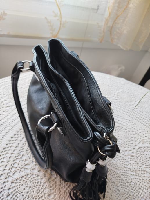 Ženska torbica, umetno usnje, podložena, dva prekata z zadrgama, notranji žepi,