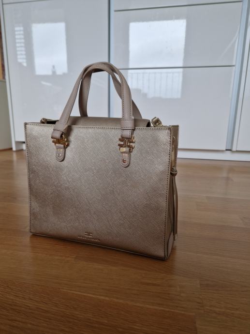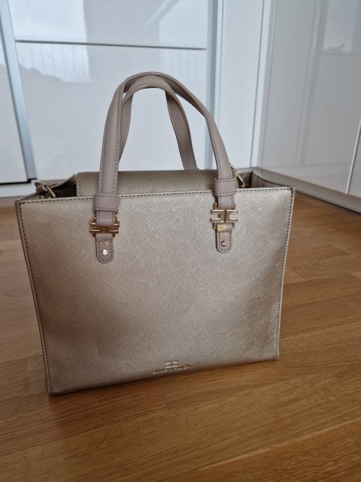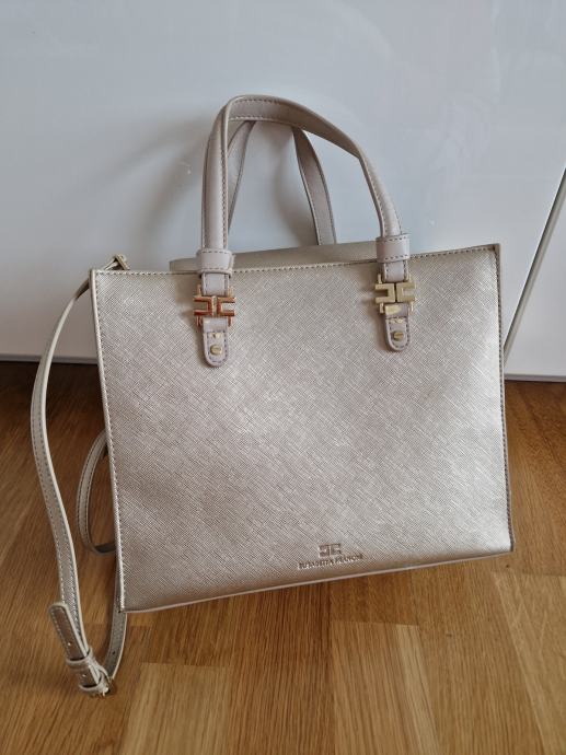 Zelo lepa ženska torbica blagovme znamke Elisabetta Franchi v zlati barvi prodam po simbolični ceni 10 eur, saj je ponekod malo obrabljena.