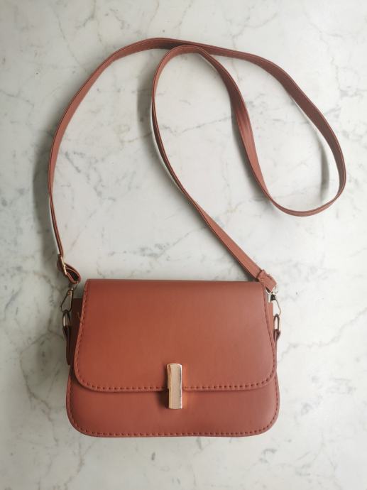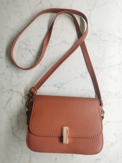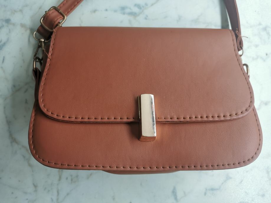 Elegantna ženska torbica, kamelje barve, nikoli uporabljena, velikosti cca 20x15 cm, z zlatimi detajli.