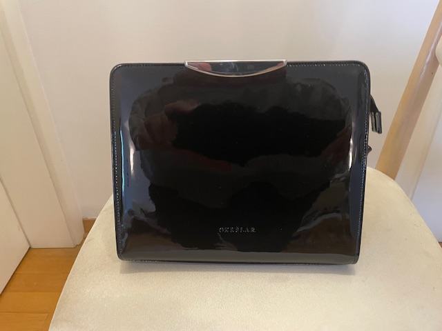Prodam nerabljeno usnjeno,črno,lakasto žensko torbico.