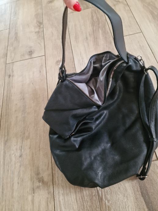 popolnoma nova ćrna torbica, večja, noter gre veliko stvari, malo bolj posebna, lahko se nosi na eno ramo, lahko čez ramo na daljši pas. ima dve zadrgi na vrhu.