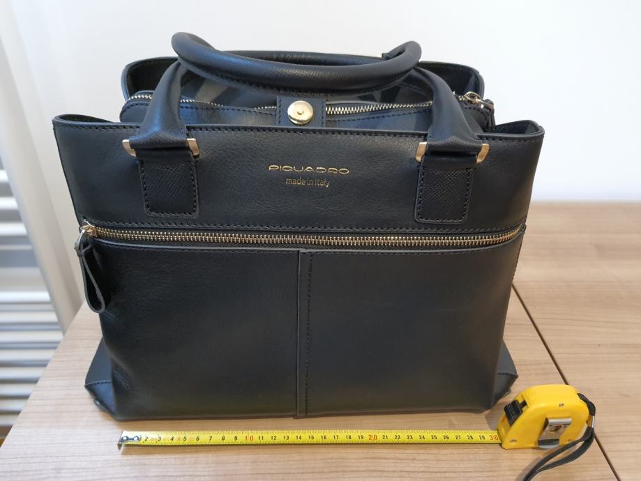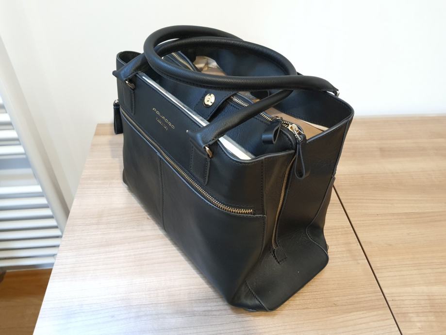 Ženska nakupovalna torbico Piquadro s predalom za iPad®/iPad®Air/Air2 iz črnega Arhimedovega usnja – BD3674IT5/N. Trije prekati. Dva ročaja, mehka na dotik in enostavna za oprijem. Prav tako jo lahko zataknete na ročaj od kovčka. Priporočena cena v trgovini je 400 EUR.