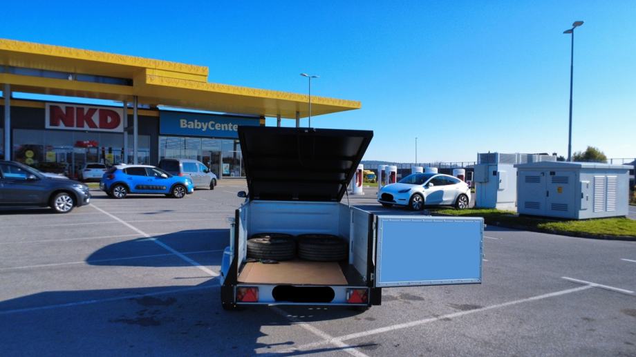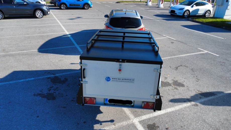 Ugodno prodam skoraj novo prikolico TPV BOX EB3 z naletno zavoro. Prikolica ima v homologaciji zapisano NDM 1200kg jo je pa možno povečati na 1300kg NDM. Prostoren BOX je dimenzij 243x123x72cm. Zadnja vrata se samostojno odprejo, prav tako streha prikolice. Zadaj ima noge, tako da je stabilna kadar stoji samostojno. Ima tudi ročno zavoro. Ima strešne sani ter prečke, kamor lahko pritrdimo kolesa, strešni šotor, strešni kovček, kajak... Pomožno kolo se dvigne s preklopom, tako da je popolnoma nemoteče. Prikolici pripada tudi zagozda za kolesa. Kolesa so izjemno kvalitetna, saj imajo oznako C in so R14. S temi kolesi ima prikolica izjemno dobre vozne lastnosti. Je izjemno ohranjena, saj smo jo uporabili le dvakrat. Prodajamo jo ravno zaradi neuporabe. Prikolica je skoraj nova (stara 2 leti) in garažirana.