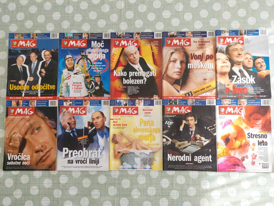 Prodam 25 revij Mag.Izhajale so v letih 2005,2006 in 2007.Cena za vsako revijo je 1,5 eura.Prodam samo vse revije skupaj v kompletu.