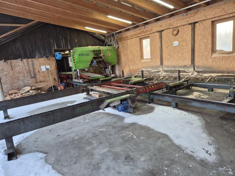 Koplet žagalna linija, hodna rampa za hlode in valjčne proge z izmeti, opravljanje v kabini