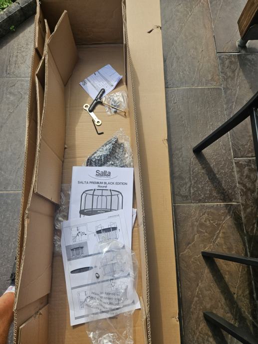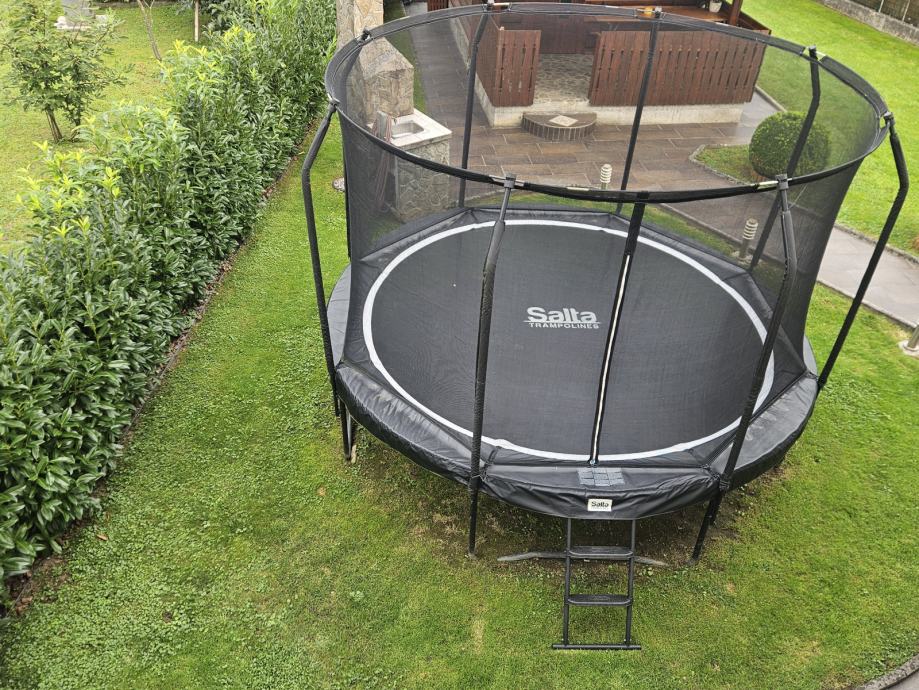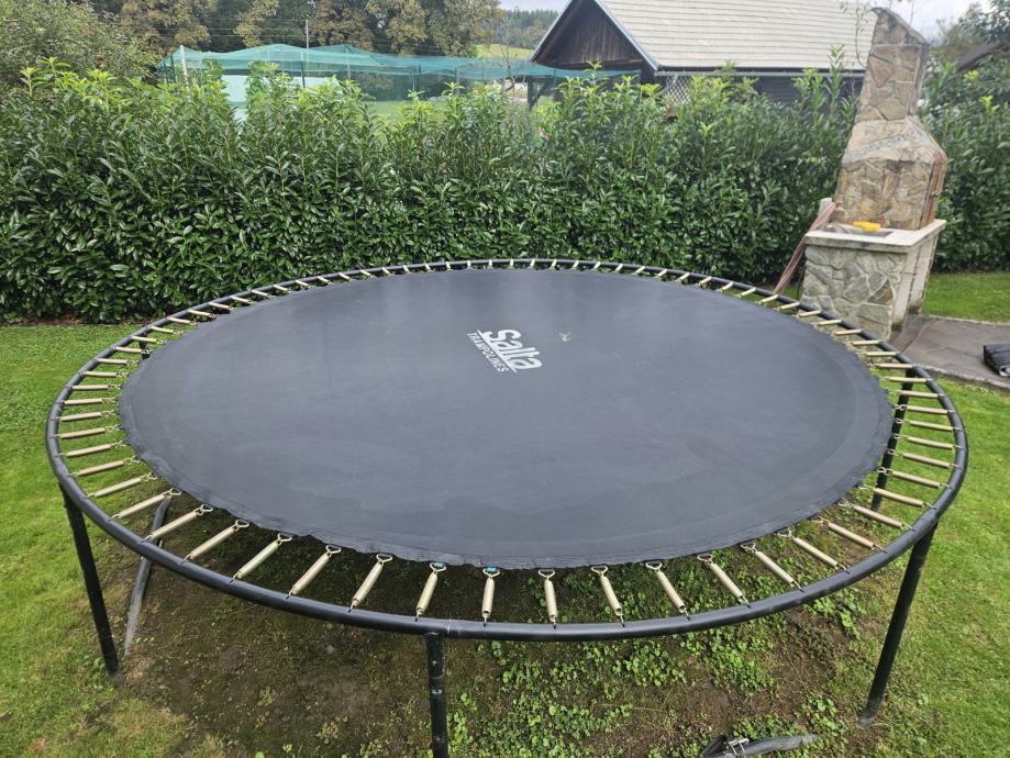 Prodam zelo lepo ohranjen Salta trampolin. Dodatna oprema: Zimsko prekrivalo ponjave, vijačasti klini za fiksiranje trampolina, lestev.