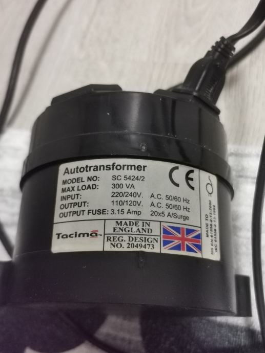 Prodajam dva komada visokokakovostnih autotransformatorjev Tacima SC5476/2, idealnih za pretvorbo napetosti iz 220/240V (EU) v 110/120V (USA/UK). Simbolična cena: 30 € za oba – odlična priložnost!
