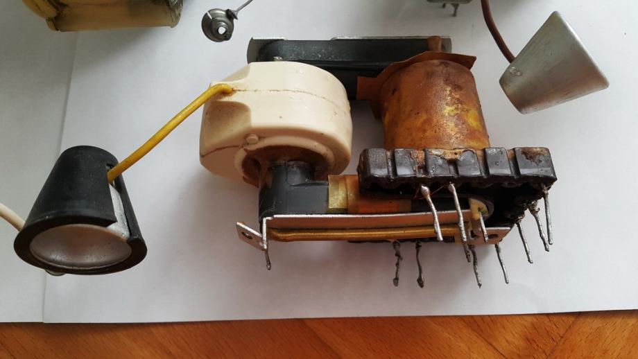 Prodam eden CRT TV FBT/LOPT transformator na Elektronke neznanega proizvajalca/modela z nekaj pripadajoče rezervne opreme. Slednji je počiščen realno pa ne vem ali je kompleten oz. ali mu zraven še kaj manjka. V predalu se mi FBT valja (kot nerabljen) sigurno že več kot 35 let. Odstranjeni je bil od delujoče CRT televizije, ki so uporabljale še stare elektronke. Še zmeraj je lahko uporaben za kakšne visoko-napetostne (VN) eksperimente ali pa kot za nadomestni-rezervni del za tovrstne televizije, če se kdo s tem ukvarja. Če ne drugega, so vsaj feritna jedra uporabljiva. Okvirna cena/kos (v oglasu) je 5 €, za cene ostalih delov pa glejte spodnji seznam.