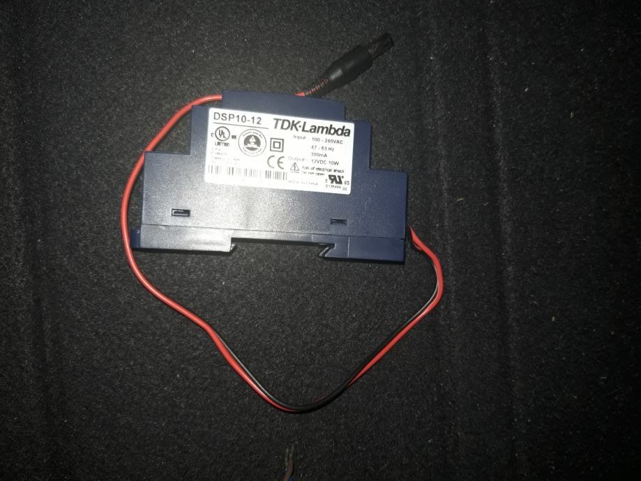 Prodam napajalnik 12VDC, 300mA za montažo na din letev. Napajalnik je primeren za napajanje nadzorne kamere, na voljo več kosov. Cena je 10€ za kos. Telefonska številka za razne informacije 040 124 360, Matej.