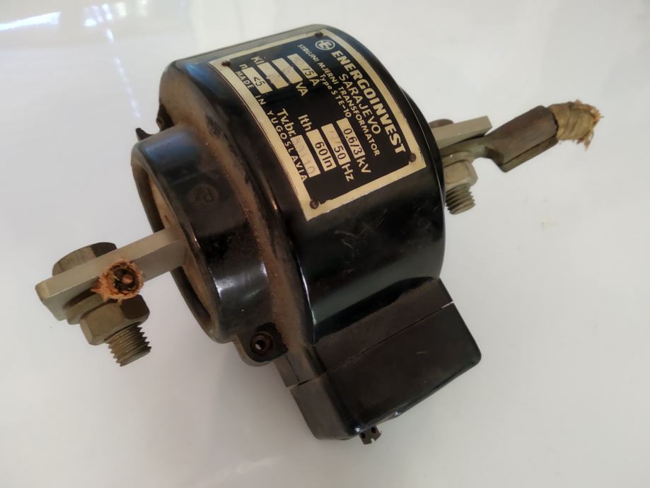 Tokovni merilni transformator STE-10 (strujni mjerni transformator) 50/5 A, 15 VA Energoinvest. Na voljo samo še 1 kos brez podstavka.
