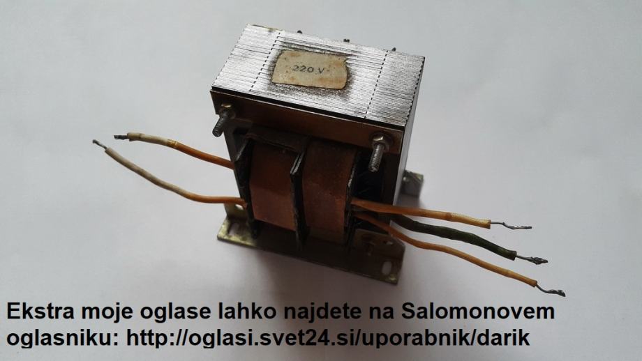 Prodam 220 V AC na 18,3 – 36,6 V AC transformator okvirne moči 60 W. Zadeva se mi skorajda že 15 let nerabljena valja v delavnici. Kozmetično je odlično ohranjen in tudi funkcionalno brezhiben. Primeren mogoče za pulzno polnjenje/desulfiranje 12 V svinčevih akumulatorjev npr. To ali pa napajanje kakšnih ventilatorjev, ipd. Skratka že čaka na svojega novega lastnika (za uporabo v drugih ali podobnih projektih).
