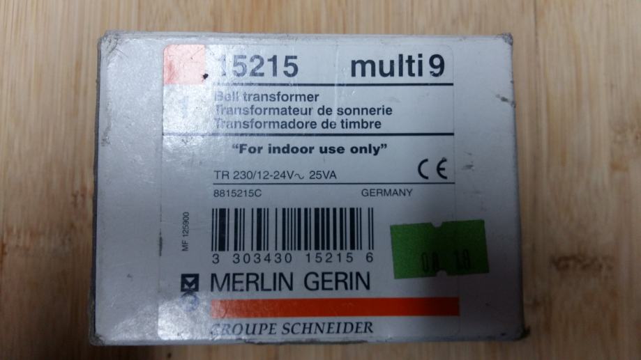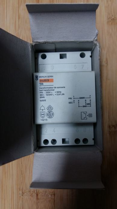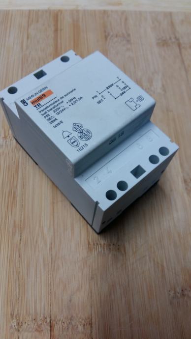 Prodam vgradni zvončni transformator Merlin Gerin TR 230/12-24V AC, moči 25VA in napetosti 12V in 24V. Cena je 20€. Telefonska številka za razne informacije 040 124 360, Matej.