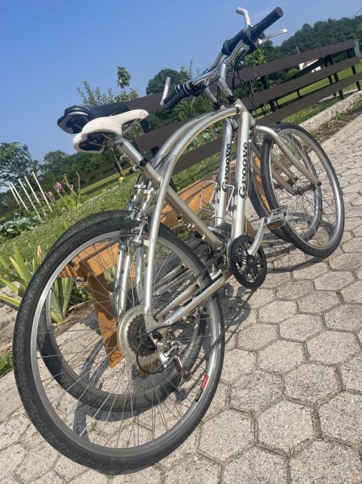 Na voljo dva odlična treking kolesa: SAMO V PARU‼️ Moški je velikost okvirja L in ženski M… Nikoli vožena po makadamu, samo po asfaltu! Ekskluziven in neponovljiv, udoben ALU okvir velikosti S in L (ženska in moška številka), komplet STX oprema in Shimano STX menjalniki, udobni usnejni GEL sedeži, moški & ženski, oba "Selle Italia", nosilci za bidon, gume Michelin City - Protect, na moškem povišano krmilo za počivanje rok, PRESTAVE Shimano STX spredaj=3x, zadaj=7prestav (skupaj 21) - vse teče kot ura - servis Maxisport Čerin. Zelo malo rabljeno. Vsak ima mogoče 700km… Kolesi sta kot novi, UŽITEK TEKOČEGA PRESTAVLJANJA...❤️ Kupec bo zelo zadovoljen!