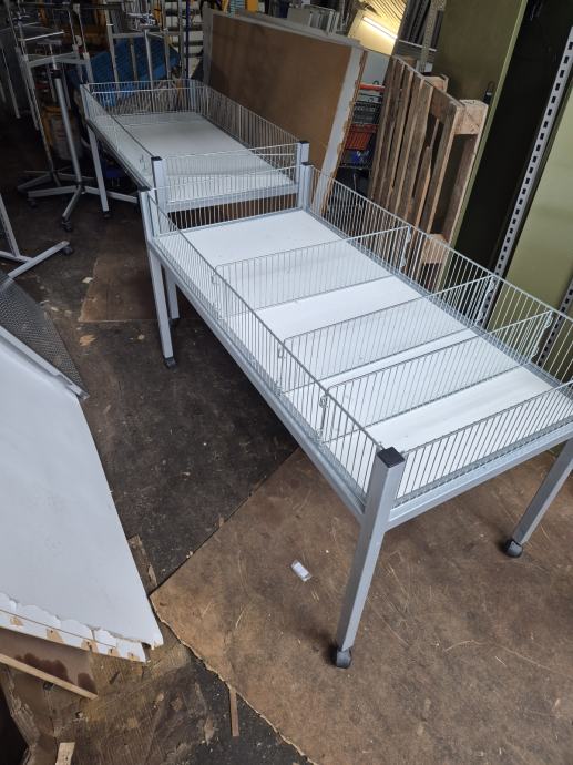 Na zalogi imamo različno opremo za trgovine, pisarne, skladišča - police, stojala, mize, reklamne table, skladiščne regale, razsvetljavo,...