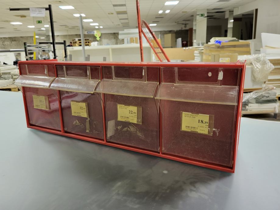 Na zalogi imamo različno opremo za trgovine, pisarne, skladišča - police, stojala, mize, reklamne table, skladiščne regale, razsvetljavo,...