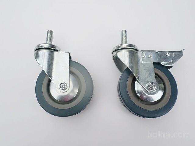Kolo X1 vrtljivo, promer 100 mm, nosilnost 75 kg, cena 5,90 €, kolo X2 vrtljivo z kočnico, promer 100 mm, nosilnost 75 kg, cena 6,90 €