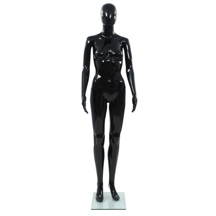 vidaXL Celotna ženska izložbena lutka s stekleno osnovo črna 175 cm