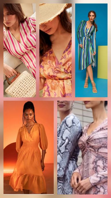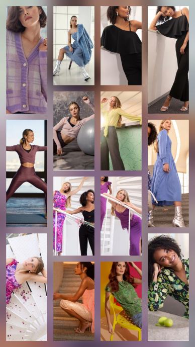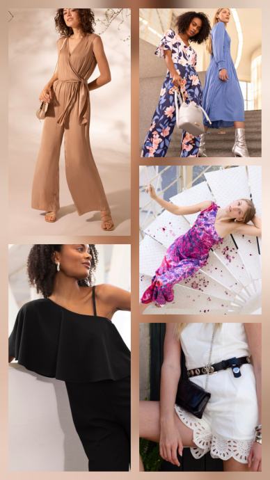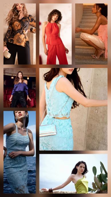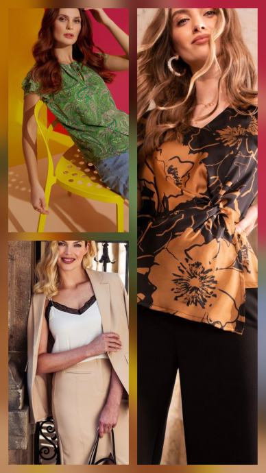 Zaloga ženskih oblačil je sestavljena iz majic, topov, tunik, kril, hlač, oblek za različne dogodke, pajacov,....