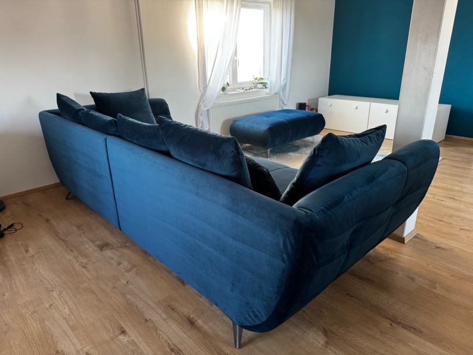 Prodam veliko zofa blagovne znamke HOM'IN, kupljeno 2024 v Lesnini. Prodaja se z taburejem.