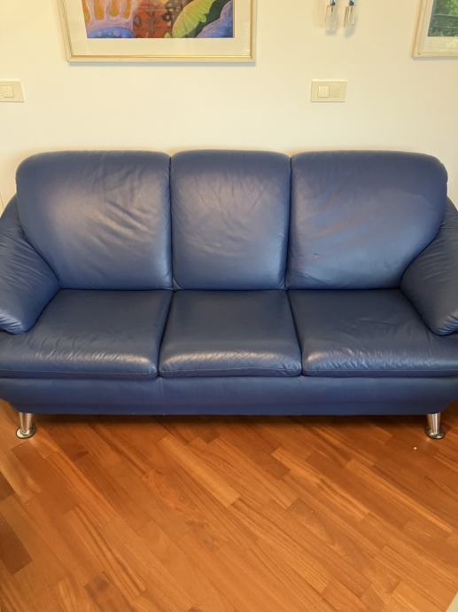 Prodam moder usnjen trosed. Je v brezhibnem stanju.