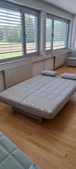Trosed CLIC CLAC zelo praktičen kavč, kateri se lahkotno spremeni v ležišče. Kakovostno izdelan, novi. Sestavljen iz kovinskega podnožja s patentiranimi Clic Clac škrajami, 3 pozicije - sedalna, relax, ležišče.