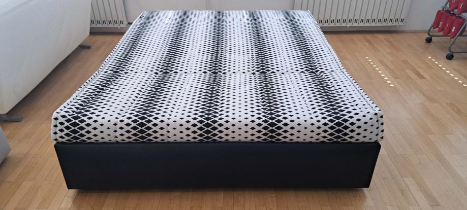 Sestavljen je iz kovinskega podnožja s patentiranimi clic škarjami. Podnožje je iz latoflex letvic, poliuretanska pena, prevleka je snemljiva, kemično čiščenje. Izdelan iz tkanine, kot je na fotografijah.