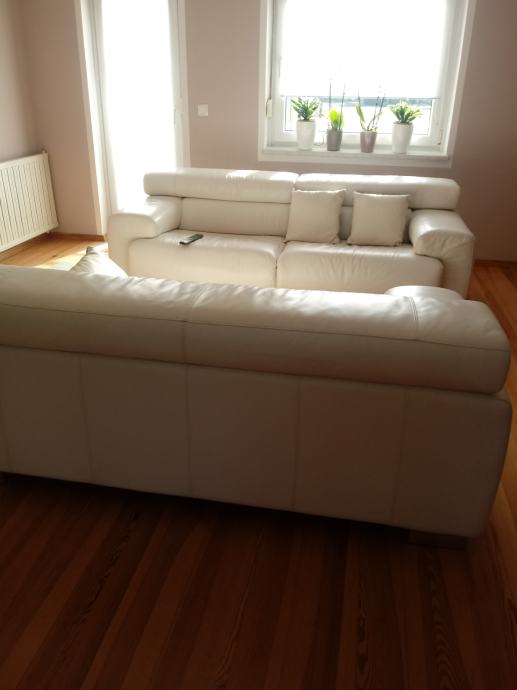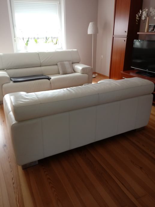 Prodam dvosed (185cm) in trosed (210cm). Bele barve. Pravo usnje. Naslonjala za glavo nastavljiva. Lepo ohranjeno.