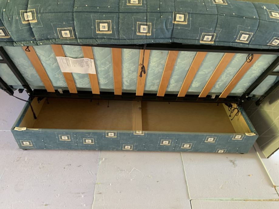 Prodam dobro ohranjen malo rabljen trosed z predalom, ki se preklopi v ležišče 190x125cm.