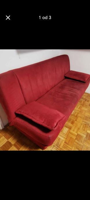 Prodajem trosed v rdeči barvi. Sedežna površina in naslon sta oblazinjena, trosed ima tudi stransko naslanjalo. Primeren za dnevno sobo.