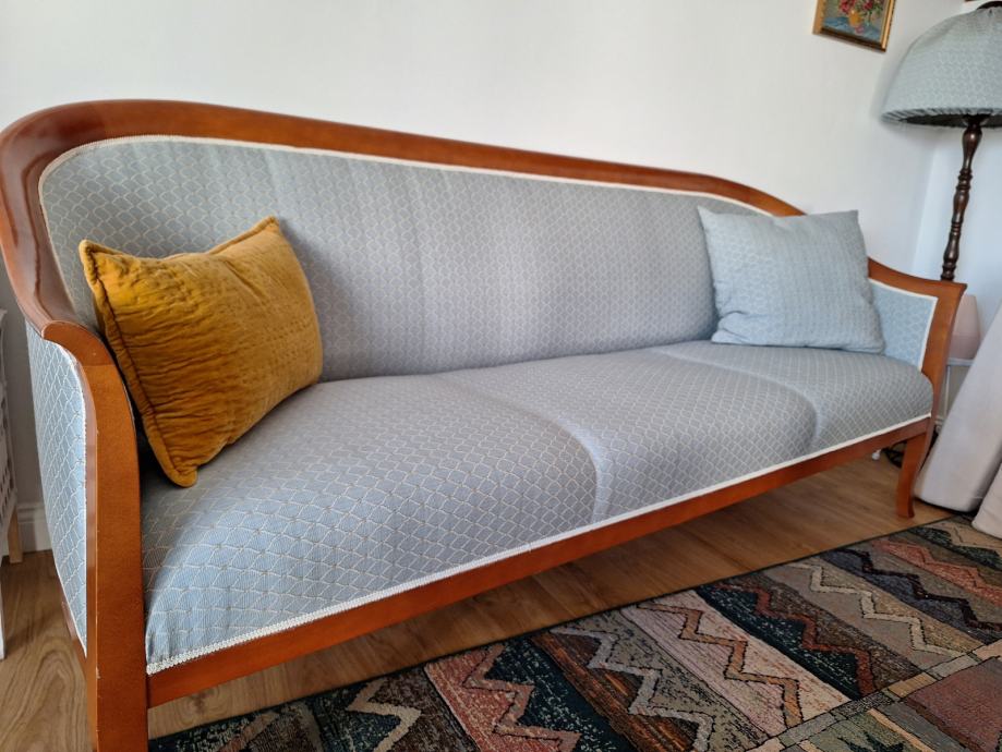 Svetlo modre barve. dolžina 190 cm, višina 70 cm. Zelo ohranjena. Iz Stilles trgovine