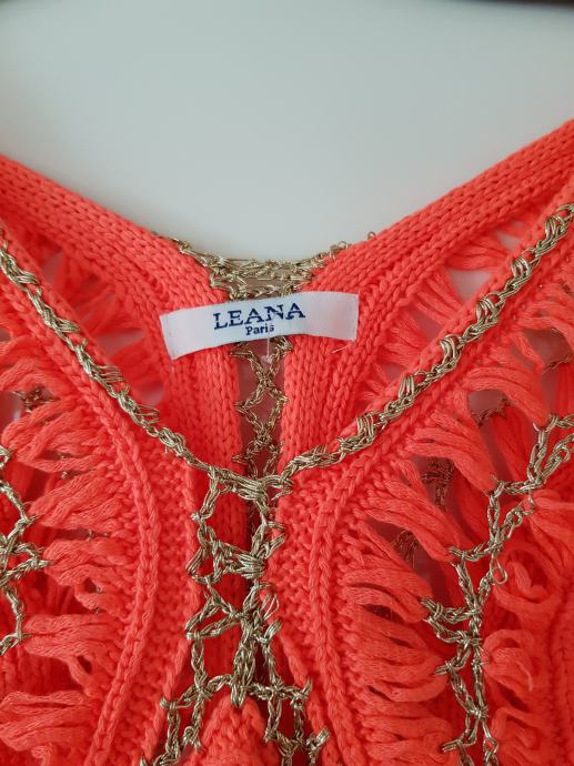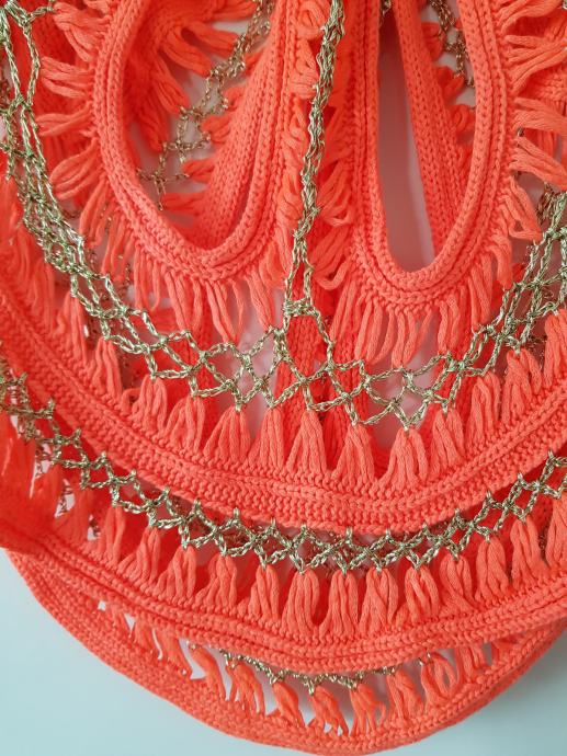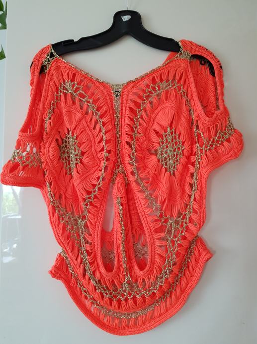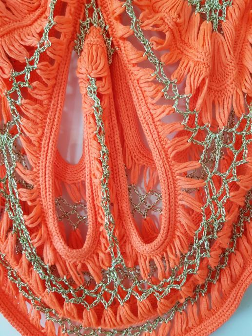 Nova, pletena v oranžno zlati barvi, raztegljiva. Od ene pazduhe do druge meri 44 do cca 50cm, dolžina je 55cm. ne menjam, ptt ni vključena v ceno