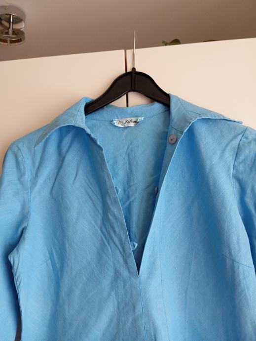 Izredno lepo ohranjena, nošena max 3x, lan/bombaž, ni raztegljiva, od ene pazduhe do druge meri 37cm, dolžina je 57cm, dolžina rokava do komolca je 3/4, ne menjam, ptt ni vključena v ceno