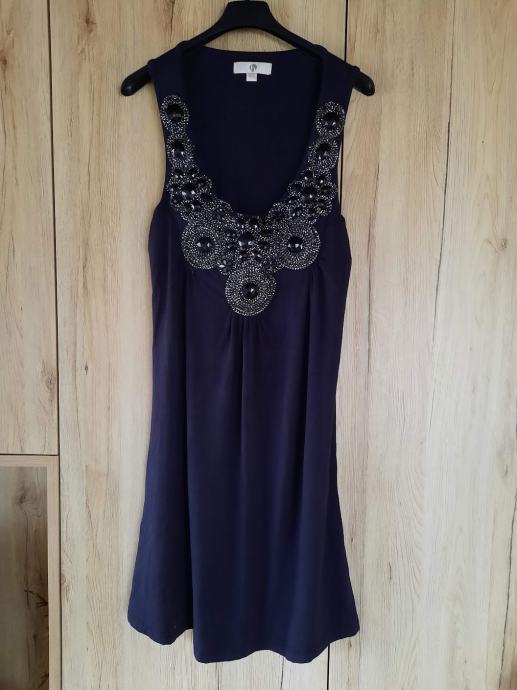 Prodam zelo malo nošeno svečano črno tuniko z okrasnimi kamni ob vratnem izrezu. Lepo se nosi na oprijee hlače, lahko pa tudi kot krajša obleka. Primerna za velikosti 38, 40, 42.